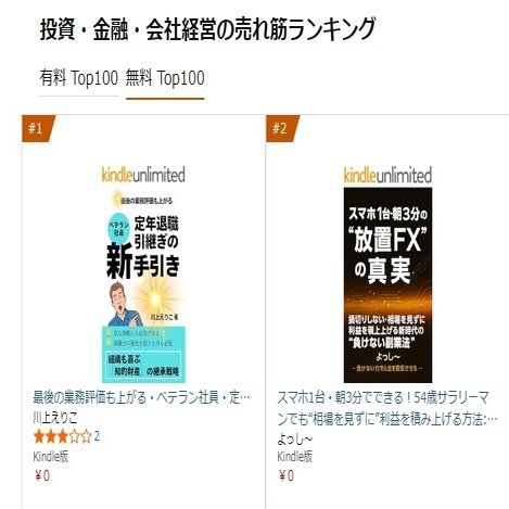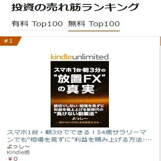 「外国為替」「成功に関する電子書籍」「 一般・投資読み物」「金融ファイナンス」「産業研究」「投資」の、合計6個のカテゴリで第1位を獲得できました!